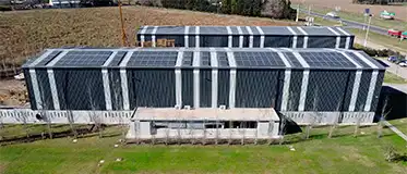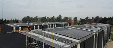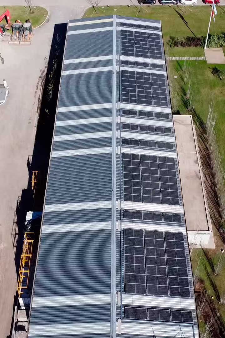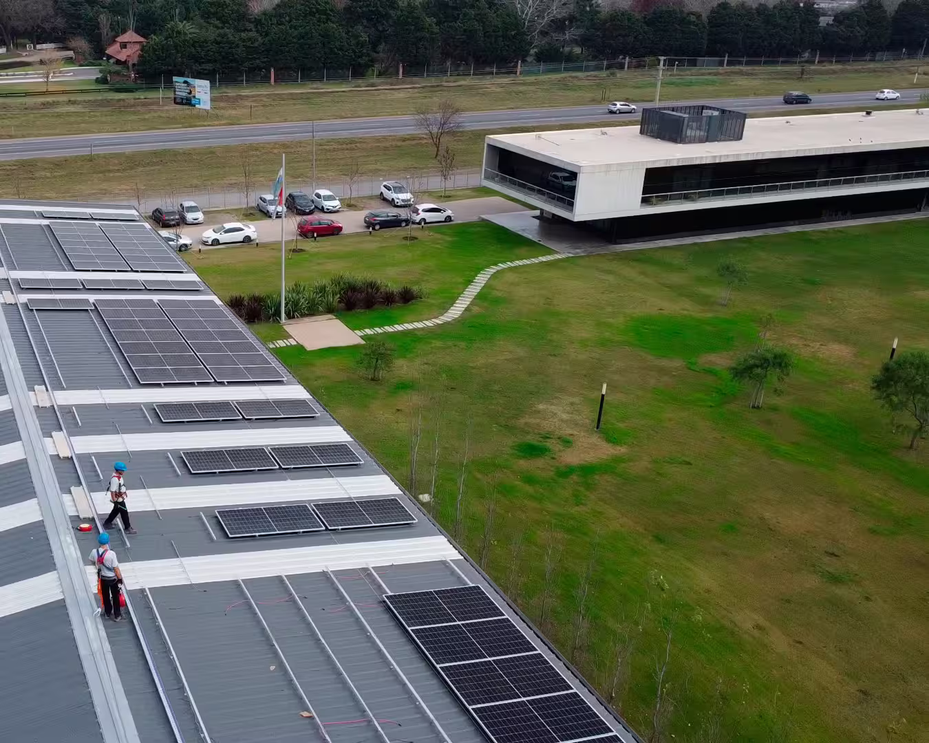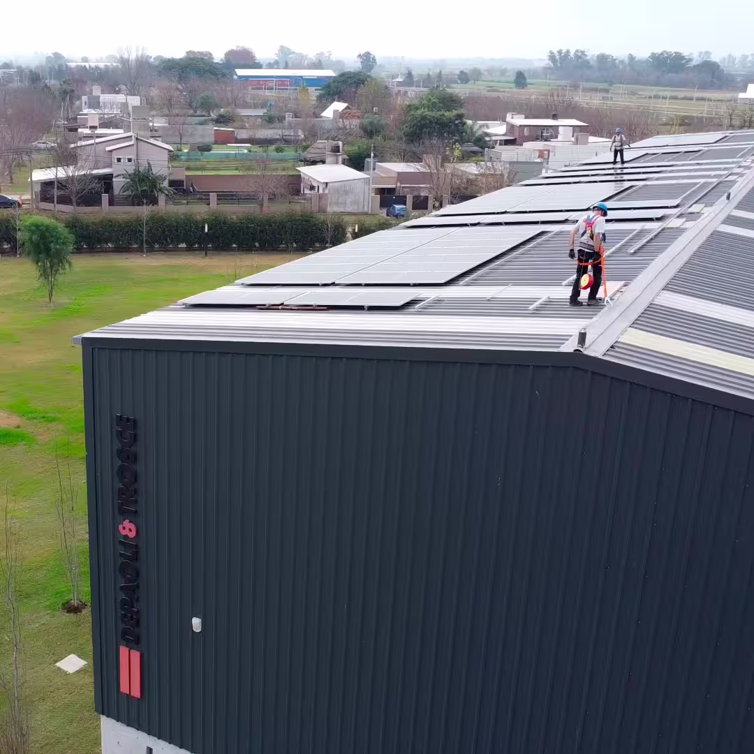 La constructora DePaoli & Trosce incorporó un sistema solar de 52,8 kWp en su sede de Ibarlucea, Santa Fe, con el objetivo de reducir su impacto ambiental y fortalecer su compromiso con la eficiencia energética. Esta instalación cubre la totalidad del consumo eléctrico de la empresa y se integra estéticamente a su estructura edilicia, diferenciándose en el rubro por su apuesta a la innovación y la sustentabilidad.