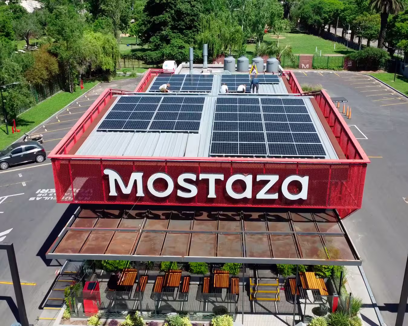 La cadena de restaurantes Mostaza decidió incorporar energía solar en su local de Rosario con un sistema On Grid de 34,5 kWp. El sistema cubre cerca del 30 % del consumo energético del establecimiento, generando ahorros directos en la factura eléctrica y mejorando la previsibilidad de los costos operativos, mientras refuerza su posicionamiento como empresa moderna y sustentable.