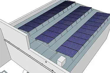 Rieles de montaje fijados directamente sobre las riendas del techo de chapa en la cubierta de las oficinas